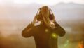夕暮れ時の青空と白いドレスを着た女性 - 自信 ストックフォトと画像